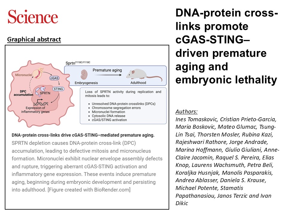 New joint publication by the Dikic and Beli labs on how DNA-protein cross-links promote cGAS-STING–driven premature aging and embryonic lethality